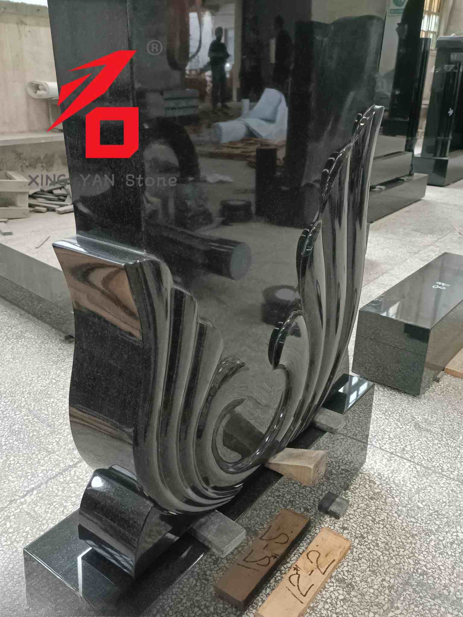 วัสดุ: ผลิตจากหินแกรนิตสีดำคุณภาพสูง หินมีความหนาแน่น แข็ง และมีความมันวาวสูง หลังจากการขัดเงา พื้นผิวจะเรียบเนียนราวกับกระจก ทำให้ทนทานต่อสภาพอากาศภายนอกและการกัดกร่อนได้ยาวนาน ทำให้มั่นใจได้ว่าศิลาจารึกหลุมศพจะยังคงใหม่อยู่เสมอ