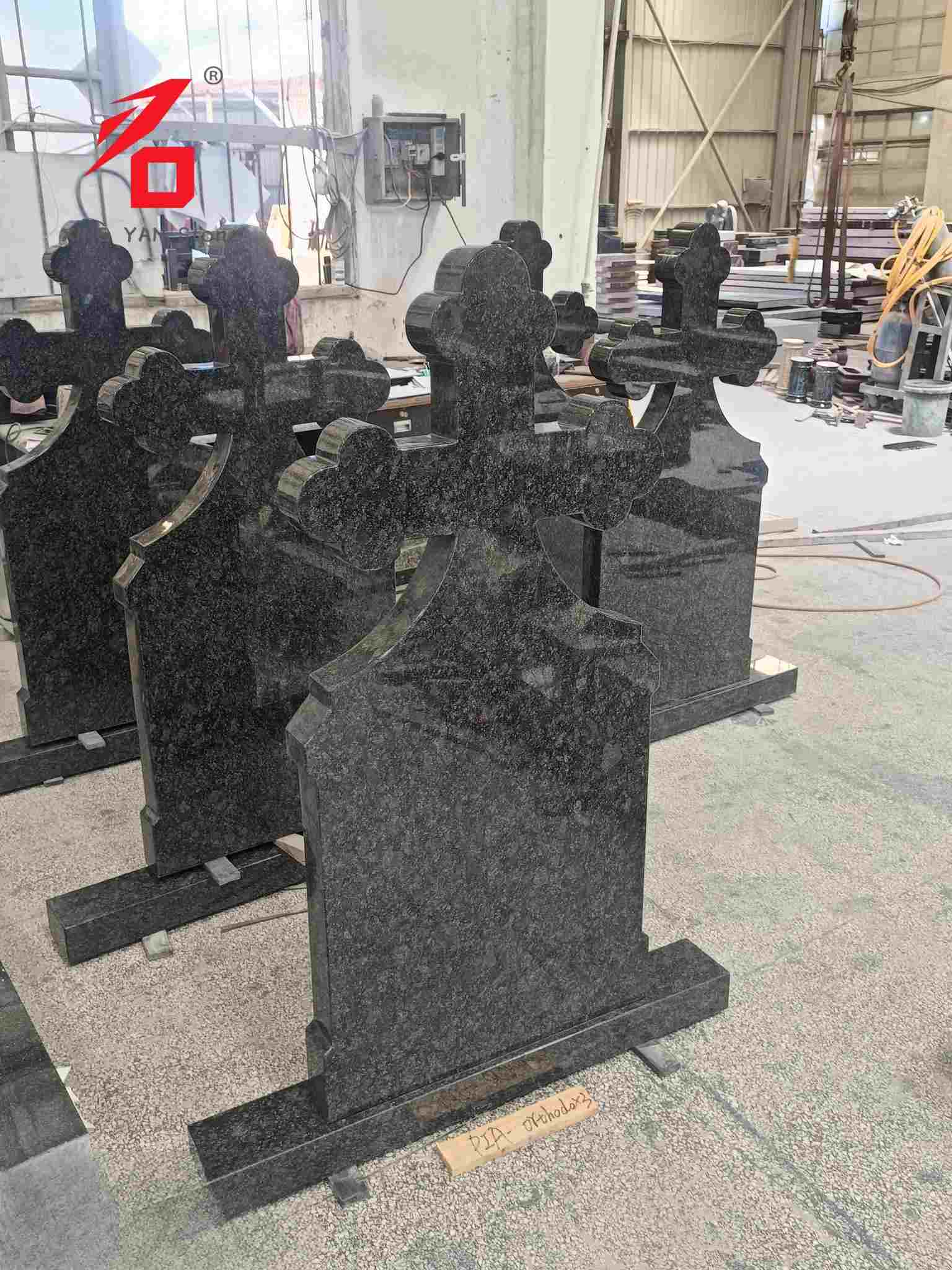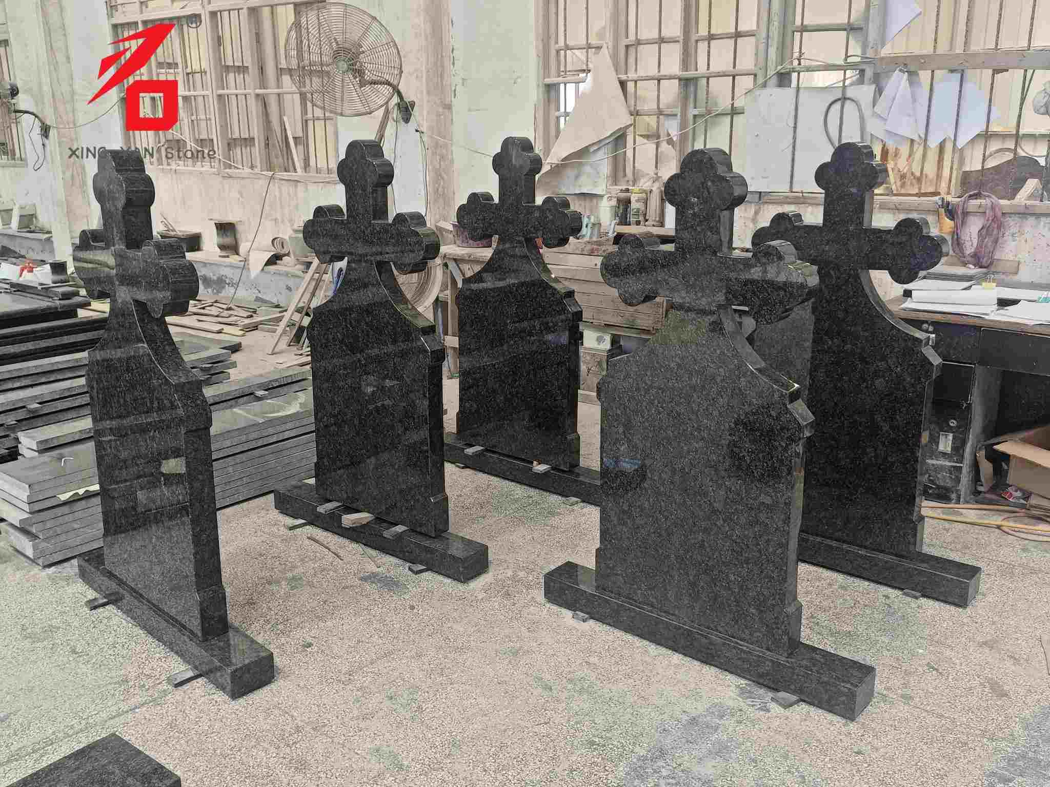 วัสดุ: เลือกหินแกรนิตสีดำความหนาแน่นสูง มีคุณสมบัติเป็นหินหนาแน่นและแข็ง ทนต่อสภาพอากาศและทนต่อการกัดเซาะ พื้นผิวผ่านการขัดเงาอย่างละเอียด ให้ความเงางามสูงและเนื้อสัมผัสที่สม่ำเสมอ ออกแบบมาสำหรับการจัดวางกลางแจ้งในระยะยาว ทนทานต่อการซีดจางและการเสียรูป ทำให้มั่นใจในความทนทานและความสมบูรณ์ของรูปลักษณ์ของศิลาจารึกหลุมศพ