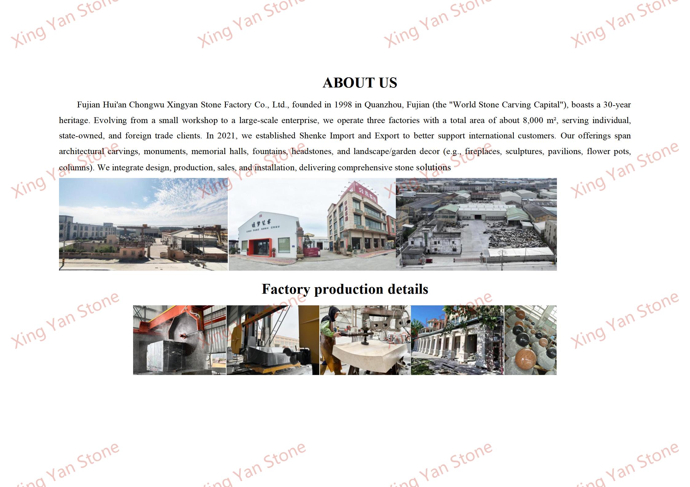 บริการปรับแต่ง: ขนาดและวัสดุของรูปปั้นสามารถปรับเปลี่ยนได้ตามความต้องการ (เช่น เปลี่ยนเป็นหินแกรนิตชนิดอื่น) และรองรับการแกะสลักข้อความ (เช่น ชื่อ ข้อความที่ระลึก)